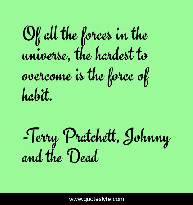 This page presents the quote "Of all the forces in the universe, the hardest to overcome is the force of habit.". Author of this quote is Terry Pratchett, Johnny and the Dead. This quote is about human-nature, humor,.