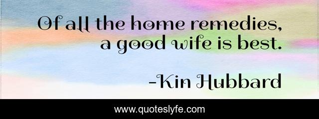 This page presents the quote "Of all the home remedies, a good wife is best.". Author of this quote is Kin Hubbard. This quote is about good, best, wife,.