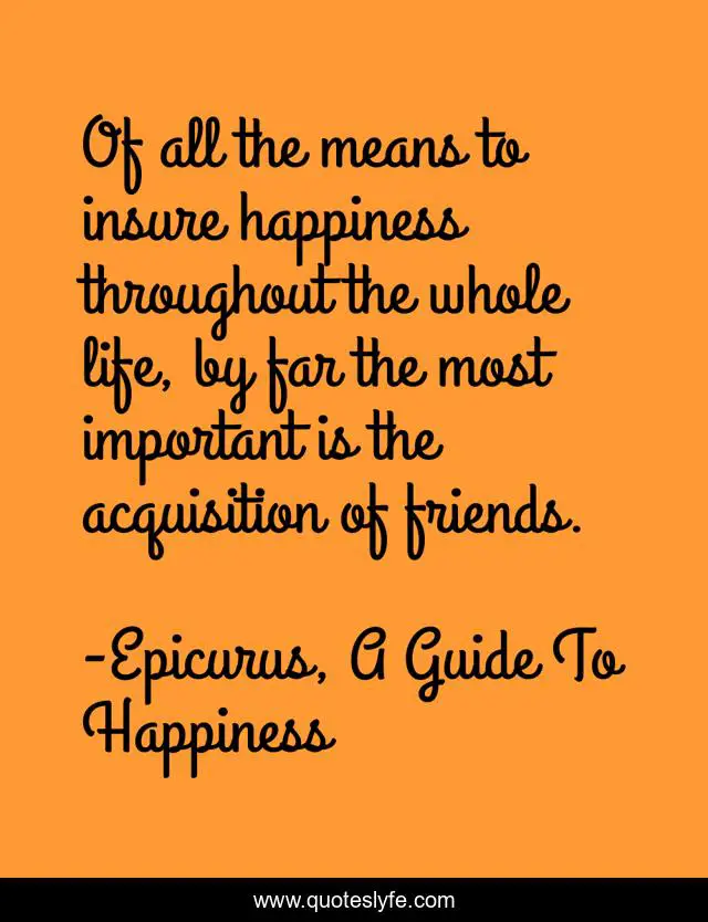 This page presents the quote "Of all the means to insure happiness throughout the whole life, by far the most important is the acquisition of friends.". Author of this quote is Epicurus, A Guide To Happiness. This quote is about friendship, happiness,.
