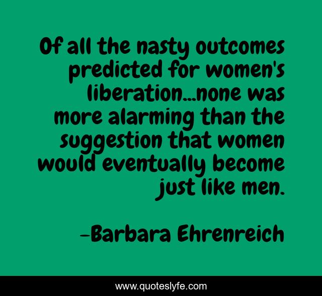 This page presents the quote "Of all the nasty outcomes predicted for women's liberation...none was more alarming than the suggestion that women would eventually become just like men.". Author of this quote is Barbara Ehrenreich. This quote is about gender, men, feminism, women-s-liberation, women,.