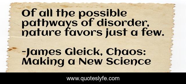 This page presents the quote "Of all the possible pathways of disorder, nature favors just a few.". Author of this quote is James Gleick, Chaos: Making a New Science. This quote is about geometry, chaos,.