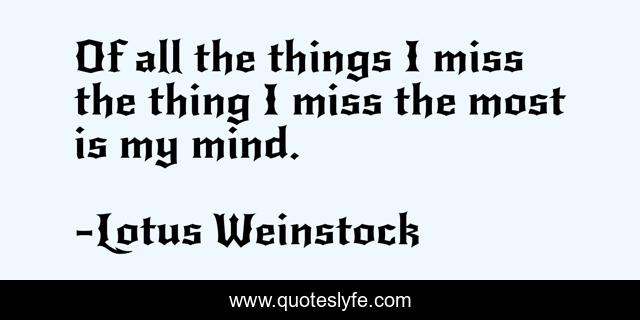 "Lotus Weinstock Quotes." Quoteslyfe.com, 2025. Fri. 05 Dec. 2025. <https://www.quoteslyfe.com/quote/Of-all-the-things-I-miss-the-260700>.