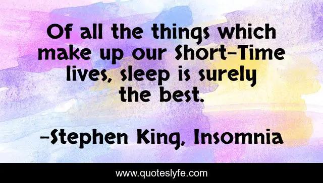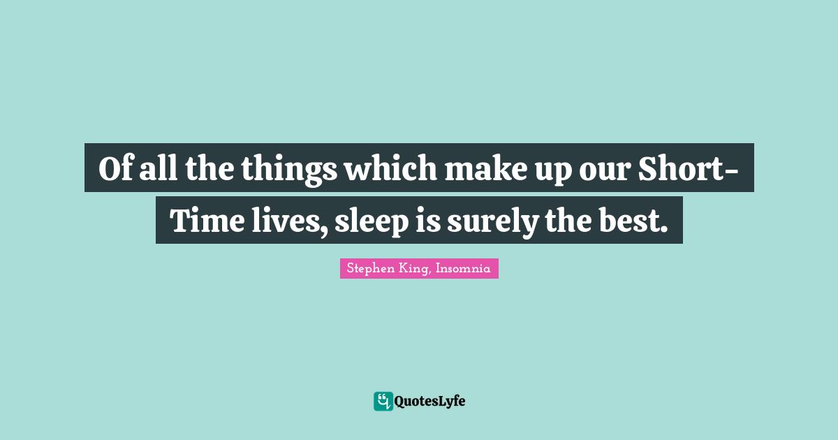 This page presents the quote "Of all the things which make up our Short-Time lives, sleep is surely the best.". Author of this quote is Stephen King, Insomnia. This quote is about insomnia, sleep, stephen-king,.