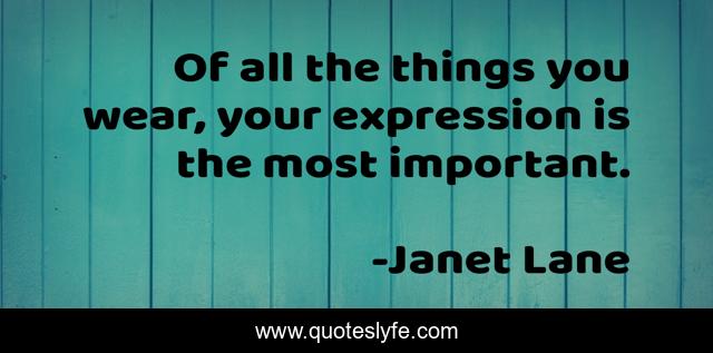 This page presents the quote "Of all the things you wear, your expression is the most important.". Author of this quote is Janet Lane. This quote is about behaviour, attitude,.