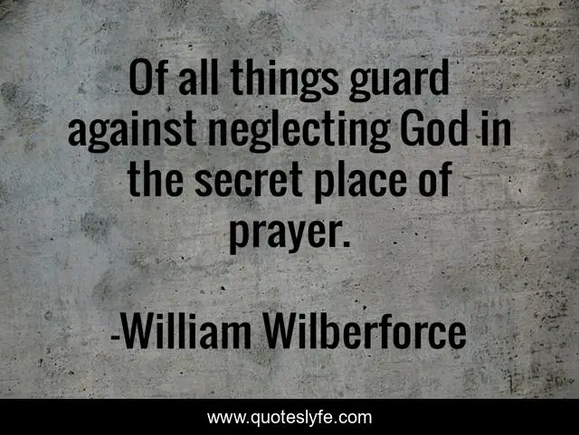 This page presents the quote "Of all things guard against neglecting God in the secret place of prayer.". Author of this quote is William Wilberforce. .