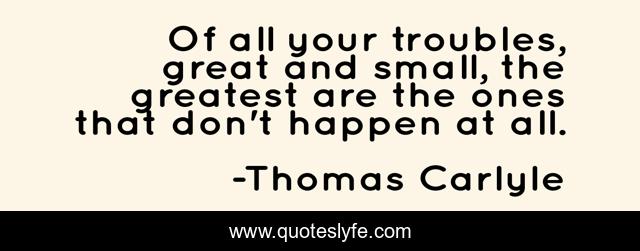 This page presents the quote "Of all your troubles, great and small, the greatest are the ones that don't happen at all.". Author of this quote is Thomas Carlyle. This quote is about troubles, worry,.