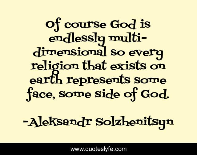 This page presents the quote "Of course God is endlessly multi-dimensional so every religion that exists on earth represents some face, some side of God.". Author of this quote is Aleksandr Solzhenitsyn. This quote is about god, earth, face,.