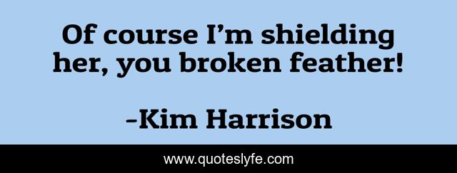 This page presents the quote "Of course I’m shielding her, you broken feather!". Author of this quote is Kim Harrison. This quote is about madison, avery, of-course, broken, nakita, feather, barnabas,.