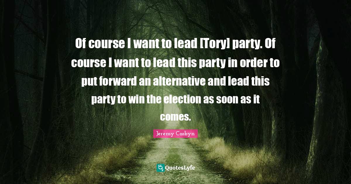 This page presents the quote "Of course I want to lead [Tory] party. Of course I want to lead this party in order to put forward an alternative and lead this party to win the election as soon as it comes.". Author of this quote is Jeremy Corbyn. This quote is about party, order, winning, election,.