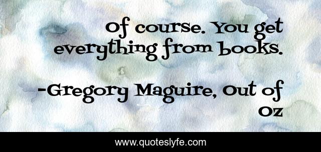 This page presents the quote "Of course. You get everything from books.". Author of this quote is Gregory Maguire, Out of Oz. This quote is about reading, books, knowledge, wicked,.