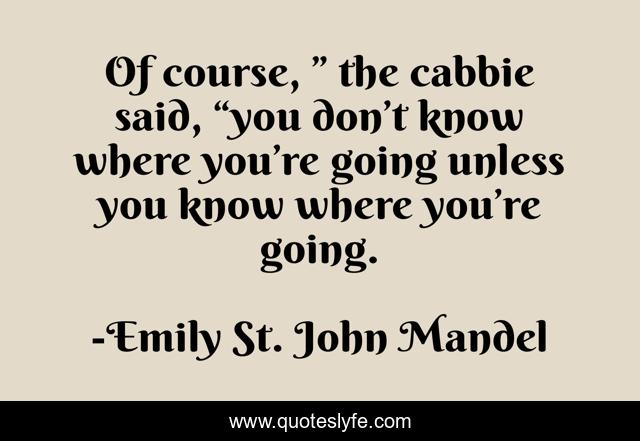 This page presents the quote "Of course, ” the cabbie said, “you don’t know where you’re going unless you know where you’re going.". Author of this quote is Emily St. John Mandel. This quote is about going, cabbie,.
