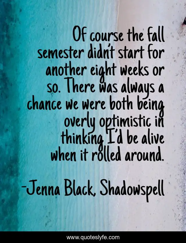 This page presents the quote "Of course the fall semester didn’t start for another eight weeks or so. There was always a chance we were both being overly optimistic in thinking I’d be alive when it rolled around.". Author of this quote is Jenna Black, Shadowspell. This quote is about ya, spell, faery, faerie, young-adult, fae,.