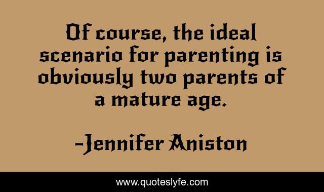 This page presents the quote "Of course, the ideal scenario for parenting is obviously two parents of a mature age.". Author of this quote is Jennifer Aniston. This quote is about age, parents, mature,.