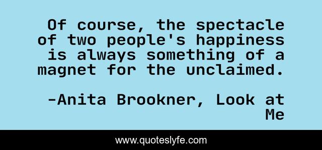This page presents the quote "Of course, the spectacle of two people's happiness is always something of a magnet for the unclaimed.". Author of this quote is Anita Brookner, Look at Me. .