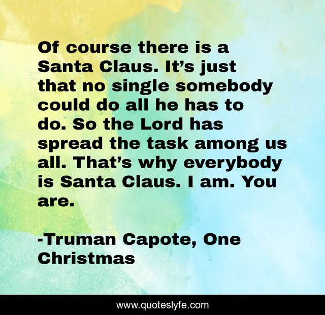 "Truman Capote, One Christmas Quotes." Quoteslyfe.com, 2025. Fri. 05 Dec. 2025. <https://www.quoteslyfe.com/quote/Of-course-there-is-a-Santa-Claus-220573>.