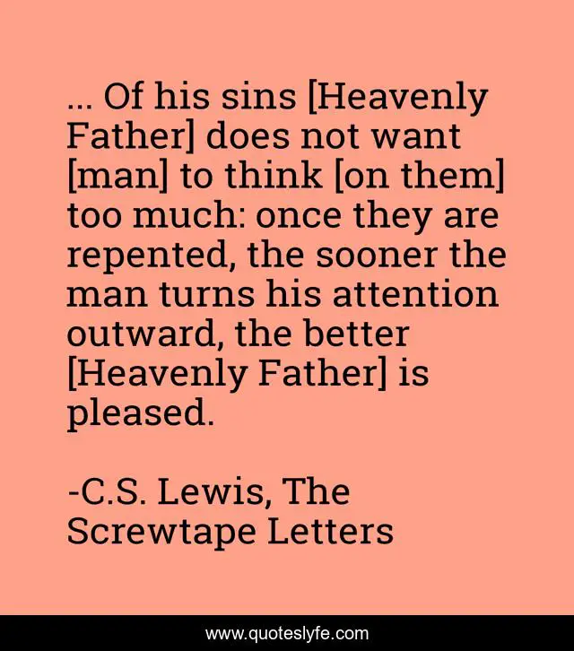"C.S. Lewis, The Screwtape Letters Quotes." Quoteslyfe.com, 2025. Tue. 09 Dec. 2025. <https://www.quoteslyfe.com/quote/Of-his-sins-Heavenly-Father-does-not-201315>.