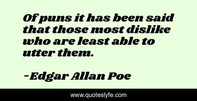 This page presents the quote "Of puns it has been said that those most dislike who are least able to utter them.". Author of this quote is Edgar Allan Poe. .