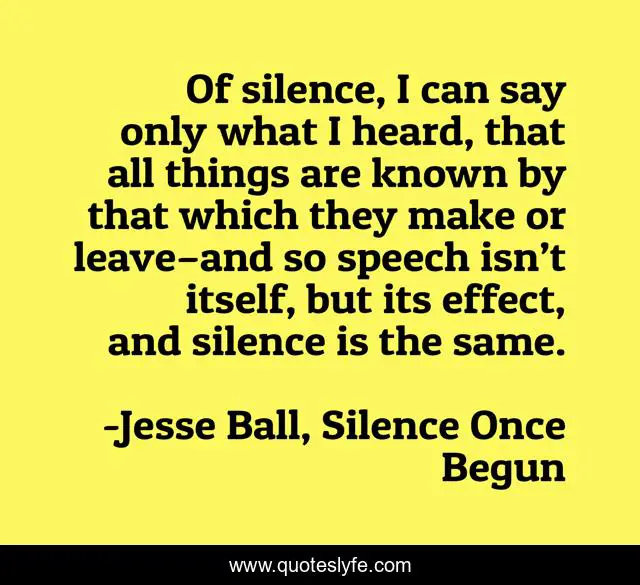 "Jesse Ball, Silence Once Begun Quotes." Quoteslyfe.com, 2025. Fri. 05 Dec. 2025. <https://www.quoteslyfe.com/quote/Of-silence-I-can-say-only-what-168808>.