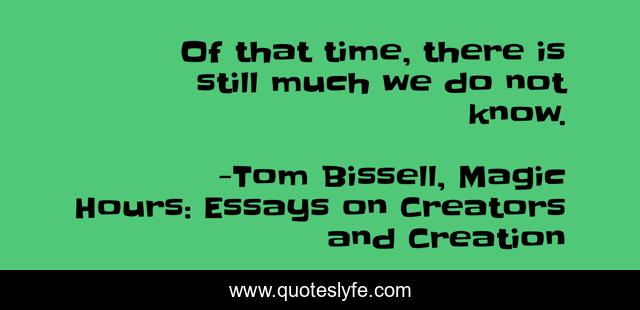 This page presents the quote "Of that time, there is still much we do not know.". Author of this quote is Tom Bissell, Magic Hours: Essays on Creators and Creation. This quote is about past, history,.