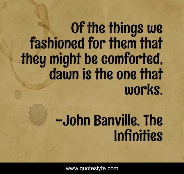 This page presents the quote "Of the things we fashioned for them that they might be comforted, dawn is the one that works.". Author of this quote is John Banville, The Infinities. This quote is about gods, dawn,.