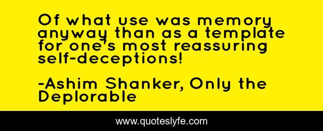"Ashim Shanker, Only the Deplorable Quotes." Quoteslyfe.com, 2025. Fri. 05 Dec. 2025. <https://www.quoteslyfe.com/quote/Of-what-use-was-memory-anyway-than-132847>.