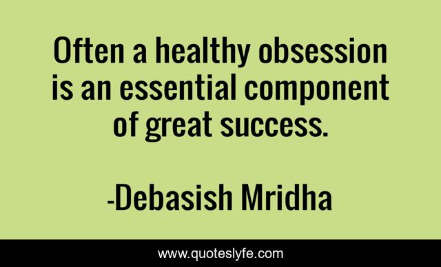 This page presents the quote "Often a healthy obsession is an essential component of great success.". Author of this quote is Debasish Mridha. This quote is about great-success, success, healthy-obsession, philosophy, debasish-mridha, quotes, debasish-mridha-md, inspirational, enthusiasm,.