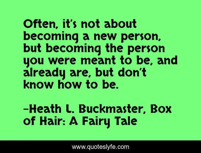 "Heath L. Buckmaster, Box of Hair: A Fairy Tale Quotes." Quoteslyfe.com, 2025. Fri. 05 Dec. 2025. <https://www.quoteslyfe.com/quote/Often-it-s-not-about-becoming-a-2129>.