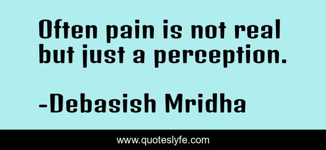 This page presents the quote "Often pain is not real but just a perception.". Author of this quote is Debasish Mridha. This quote is about pain-is-a-perception, pain-is-not-real, perception, mridha, debasish, debasish-mridha, philosophy,.