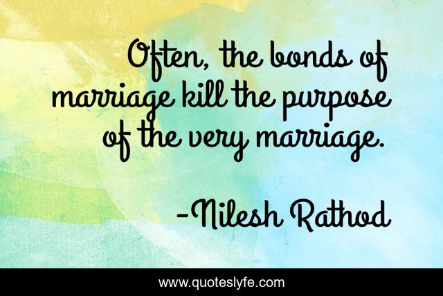 This page presents the quote "Often, the bonds of marriage kill the purpose of the very marriage.". Author of this quote is Nilesh Rathod. This quote is about marriage-advice, bond, marriage, marry, married-life,.