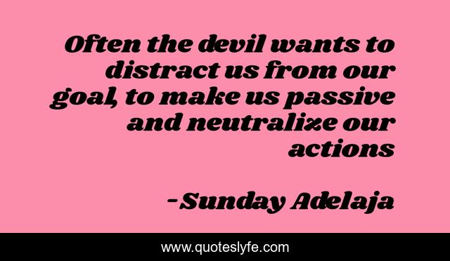 This page presents the quote "Often the devil wants to distract us from our goal, to make us passive and neutralize our actions". Author of this quote is Sunday Adelaja. This quote is about devil, goal, neutralize, distract, passive, action,.