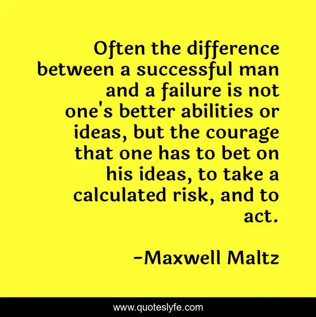 This page presents the quote "Often the difference between a successful man and a failure is not one's better abilities or ideas, but the courage that one has to bet on his ideas, to take a calculated risk, and to act.". Author of this quote is Maxwell Maltz. This quote is about courage, risk, man,.