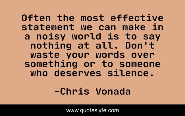 This page presents the quote "Often the most effective statement we can make in a noisy world is to say nothing at all. Don't waste your words over something or to someone who deserves silence.". Author of this quote is Chris Vonada. This quote is about expectation, silence, transformation,.