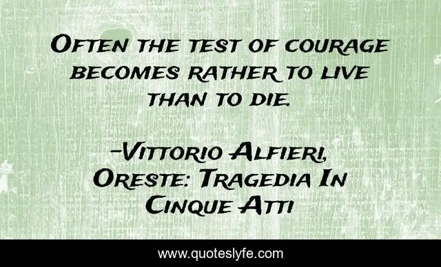 This page presents the quote "Often the test of courage becomes rather to live than to die.". Author of this quote is Vittorio Alfieri, Oreste: Tragedia In Cinque Atti. This quote is about living, courage, death,.