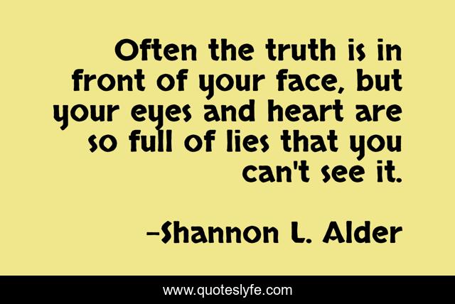 This page presents the quote "Often the truth is in front of your face, but your eyes and heart are so full of lies that you can't see it.". Author of this quote is Shannon L. Alder. This quote is about relationships, bad-perception, honesty, family, religion, lies, relationship, truth, church,.