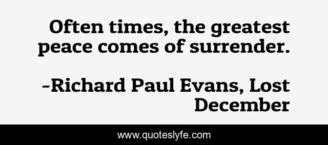 This page presents the quote "Often times, the greatest peace comes of surrender.". Author of this quote is Richard Paul Evans, Lost December. This quote is about peace, acceptance, surrender, calm, understanding,.