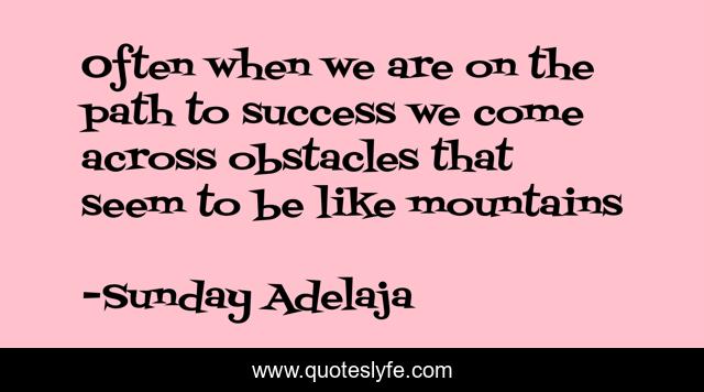 This page presents the quote "Often when we are on the path to success we come across obstacles that seem to be like mountains". Author of this quote is Sunday Adelaja. This quote is about mountain, wealth, success, prosperity, money, obstacles, riches, path, seem,.