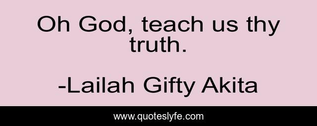 This page presents the quote "Oh God, teach us thy truth.". Author of this quote is Lailah Gifty Akita. This quote is about faith, christian, god, religion, truth, teach,.