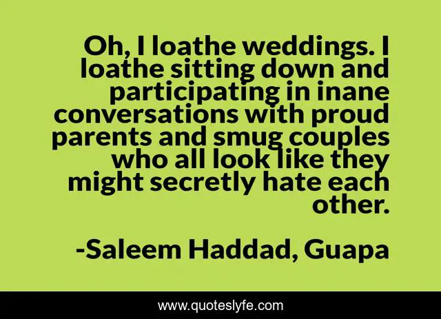 "Saleem Haddad, Guapa Quotes." Quoteslyfe.com, 2025. Wed. 24 Dec. 2025. <https://www.quoteslyfe.com/quote/Oh-I-loathe-weddings-I-loathe-sitting-86070>.