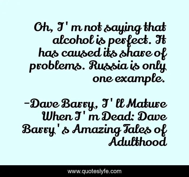 "Dave Barry, I'll Mature When I'm Dead: Dave Barry's Amazing Tales of Adulthood Quotes." Quoteslyfe.com, 2025. Fri. 05 Dec. 2025. <https://www.quoteslyfe.com/quote/Oh-I-m-not-saying-that-alcohol-246994>.