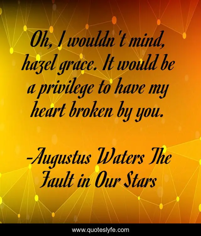 This page presents the quote "Oh, I wouldn't mind, hazel grace. It would be a privilege to have my heart broken by you.". Author of this quote is Augustus Waters The Fault in Our Stars. .