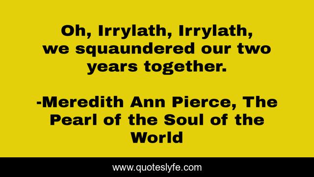 "Meredith Ann Pierce, The Pearl of the Soul of the World Quotes." Quoteslyfe.com, 2025. Sat. 06 Dec. 2025. <https://www.quoteslyfe.com/quote/Oh-Irrylath-Irrylath-we-squaundered-our-two-62802>.