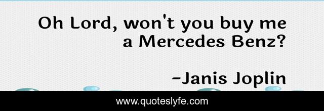 This page presents the quote "Oh Lord, won't you buy me a Mercedes Benz?". Author of this quote is Janis Joplin. This quote is about materialism, prayer,.