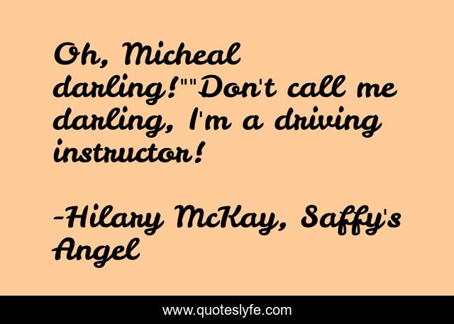 This page presents the quote "Oh, Micheal darling!""Don't call me darling, I'm a driving instructor!". Author of this quote is Hilary McKay, Saffy's Angel. This quote is about funny, comedy, love, affection,.