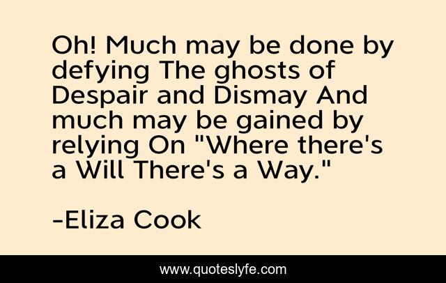 This page presents the quote "Oh! Much may be done by defying The ghosts of Despair and Dismay And much may be gained by relying On "Where there's a Will There's a Way."". Author of this quote is Eliza Cook. .