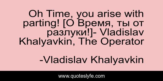 This page presents the quote "Oh Time, you arise with parting! [О Время, ты от разлуки!]- Vladislav Khalyavkin, The Operator". Author of this quote is Vladislav Khalyavkin. This quote is about life, metaphysics, time,.