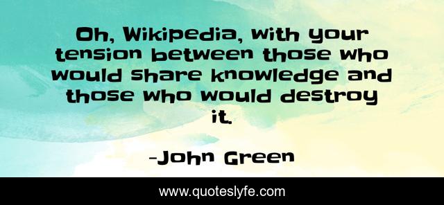 This page presents the quote "Oh, Wikipedia, with your tension between those who would share knowledge and those who would destroy it.". Author of this quote is John Green. .