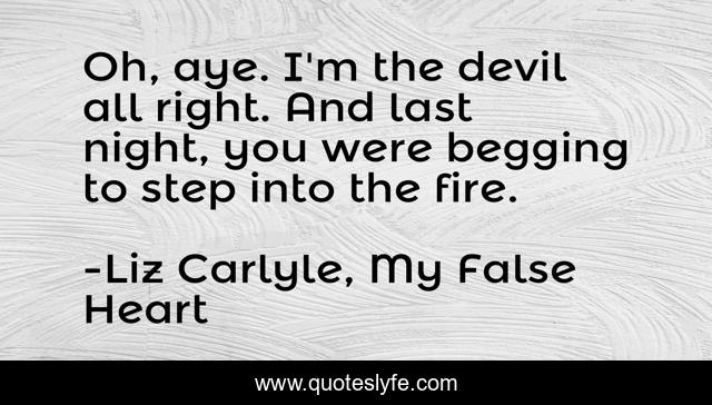 This page presents the quote "Oh, aye. I'm the devil all right. And last night, you were begging to step into the fire.". Author of this quote is Liz Carlyle, My False Heart. .