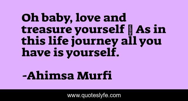 This page presents the quote "Oh baby, love and treasure yourself ❤ As in this life journey all you have is yourself.". Author of this quote is Ahimsa Murfi. This quote is about life, ahimsa, love, self-love, self-worth, ahimsa-padmanaba-murfi, journey, affection,.