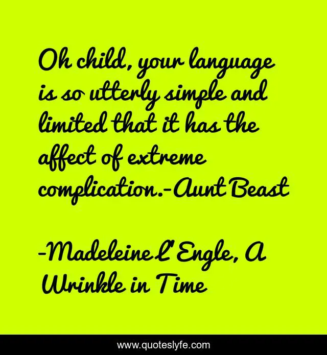 "Madeleine L'Engle, A Wrinkle in Time Quotes." Quoteslyfe.com, 2025. Fri. 05 Dec. 2025. <https://www.quoteslyfe.com/quote/Oh-child-your-language-is-so-utterly-159046>.