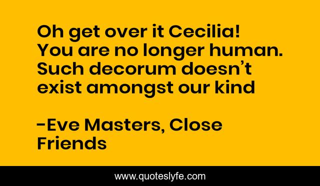 This page presents the quote "Oh get over it Cecilia! You are no longer human. Such decorum doesn’t exist amongst our kind". Author of this quote is Eve Masters, Close Friends. This quote is about vampires, dark-fantasy, fantasy, supernatural, scifi, dark-humor, young-adult-fantasy, adult-fiction,.